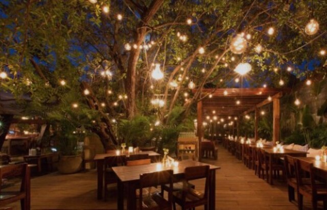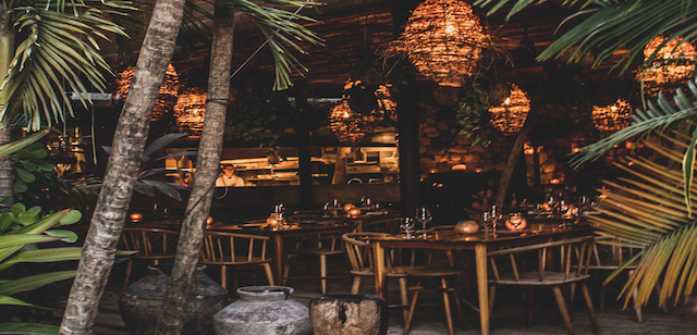 A space in nature, surrounded by palm trees and decorated in an oriental style, full of magical corners. The decoration is bohemian with natural materials such as reclaimed wood, wicker, bamboo and stone. A rustic simplicity that allows energy to flow into and into nature. It also has a hookah-bar created as a space to relax and enjoy with friends; with low rustic wood tables, comfortable beanbags, oriental rugs and traditional cushions, where you can enjoy the latest in conceptual music, played by the resident DJ.